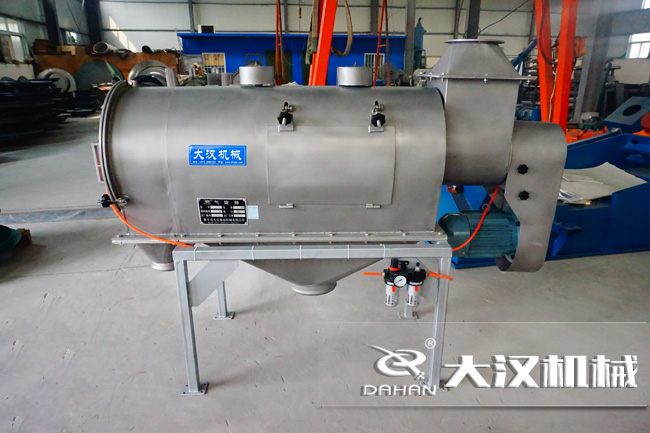 臥式氣旋篩是新鄉(xiāng)市大漢振動機械有限公司W(wǎng)QS系列產(chǎn)品。本系列產(chǎn)品的篩網(wǎng)為圓筒狀,置于機體內(nèi),物料通過螺旋輸送系統(tǒng)后,和氣流混合、霧化進(jìn)入網(wǎng)筒內(nèi);通過網(wǎng)筒內(nèi)風(fēng)輪葉片使物料同時受離心力和旋風(fēng)推進(jìn)力,從而迫使物料噴射過網(wǎng),由細(xì)料排出口排出,不能過網(wǎng)的物料沿網(wǎng)筒壁從粗料排出口排出。多用于冶金、礦業(yè)、制藥、食品、化工、金屬粉末及非金屬等行業(yè),一般用于累輕或較細(xì)微粉和超微粉行業(yè)。